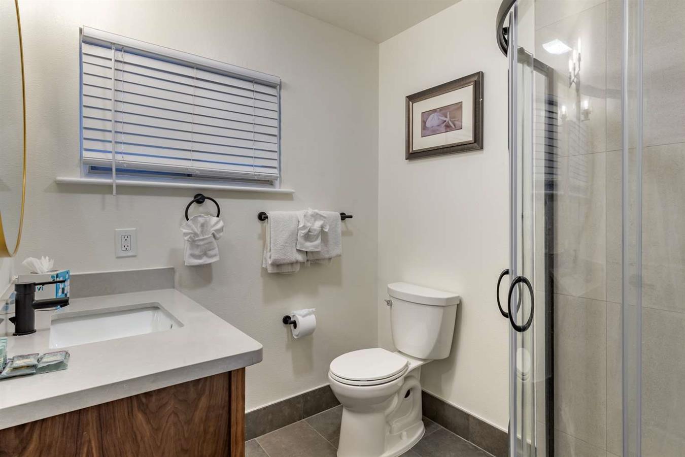 Dank der kühlen Brise, die in Carmel weht, ist die Klimaanlage überflüssig! Die schön eingerichteten Gästezimmer sind ausgestattet mit Standventilatoren, 50"-LCD-Fernseher mit Kabelsendern und HBO, Kühlschrank und High-Speed-Internetzugang.