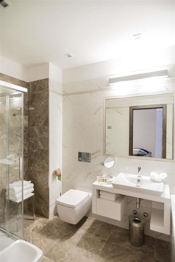 Der Beweis sind die hochwertigen Materialien, die bei Bau und Gestaltung der öffentlichen Bereiche und der Zimmer verwendet wurden und in denen sich bedeutende Marken italienischen Stils widerspiegeln.Alle 55 Zimmer des Hotels sind mit allem erdenklichen Komfort und den neuesten technologischen Geräten ausgestattet.