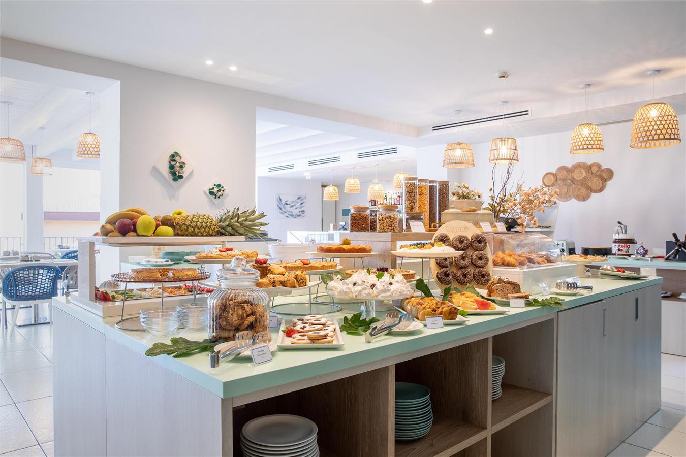 The breakfast buffet is served in the spacious, cosy and bright hall that gives guests the option of choosing their own outdoor table on the adjoining terrace.