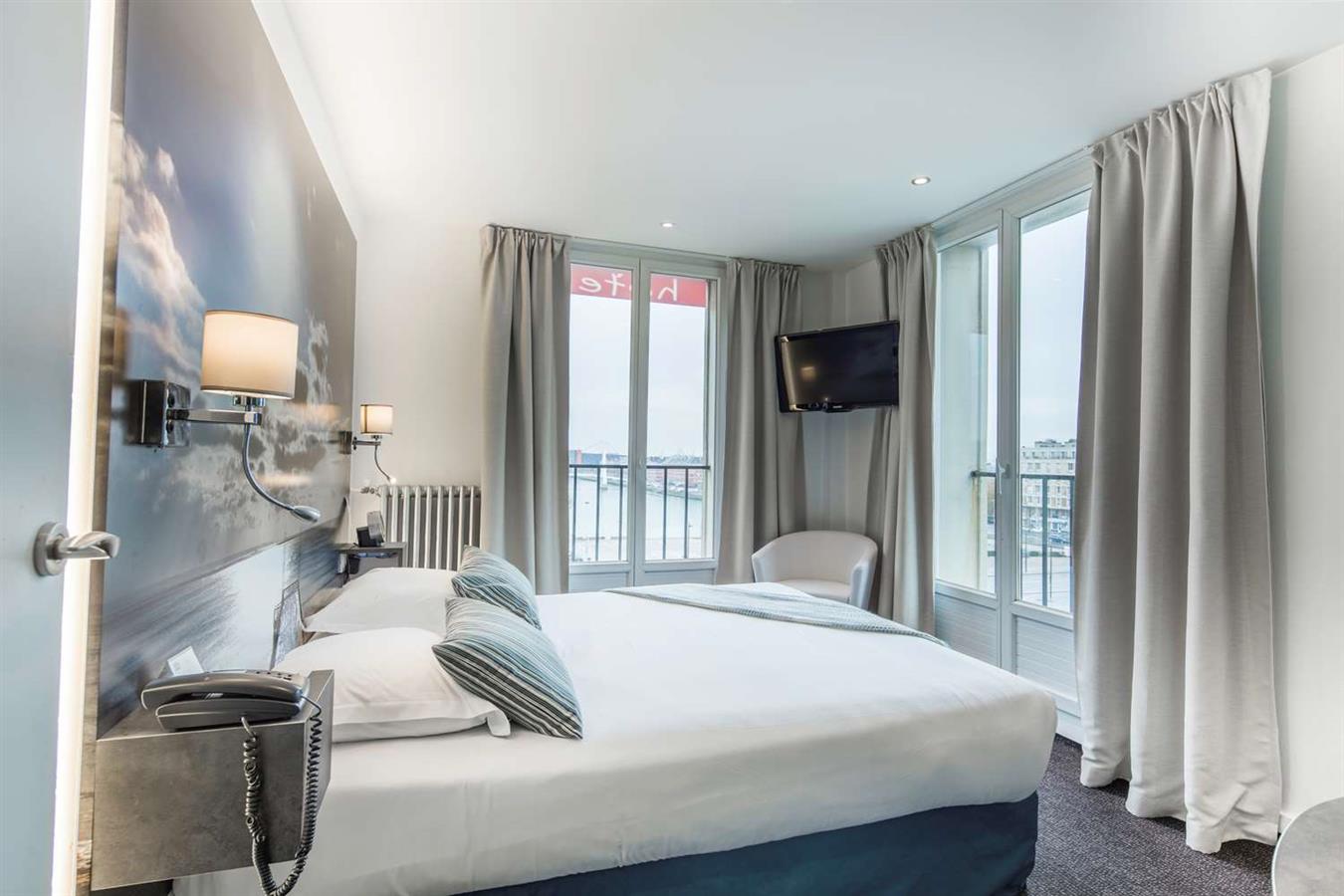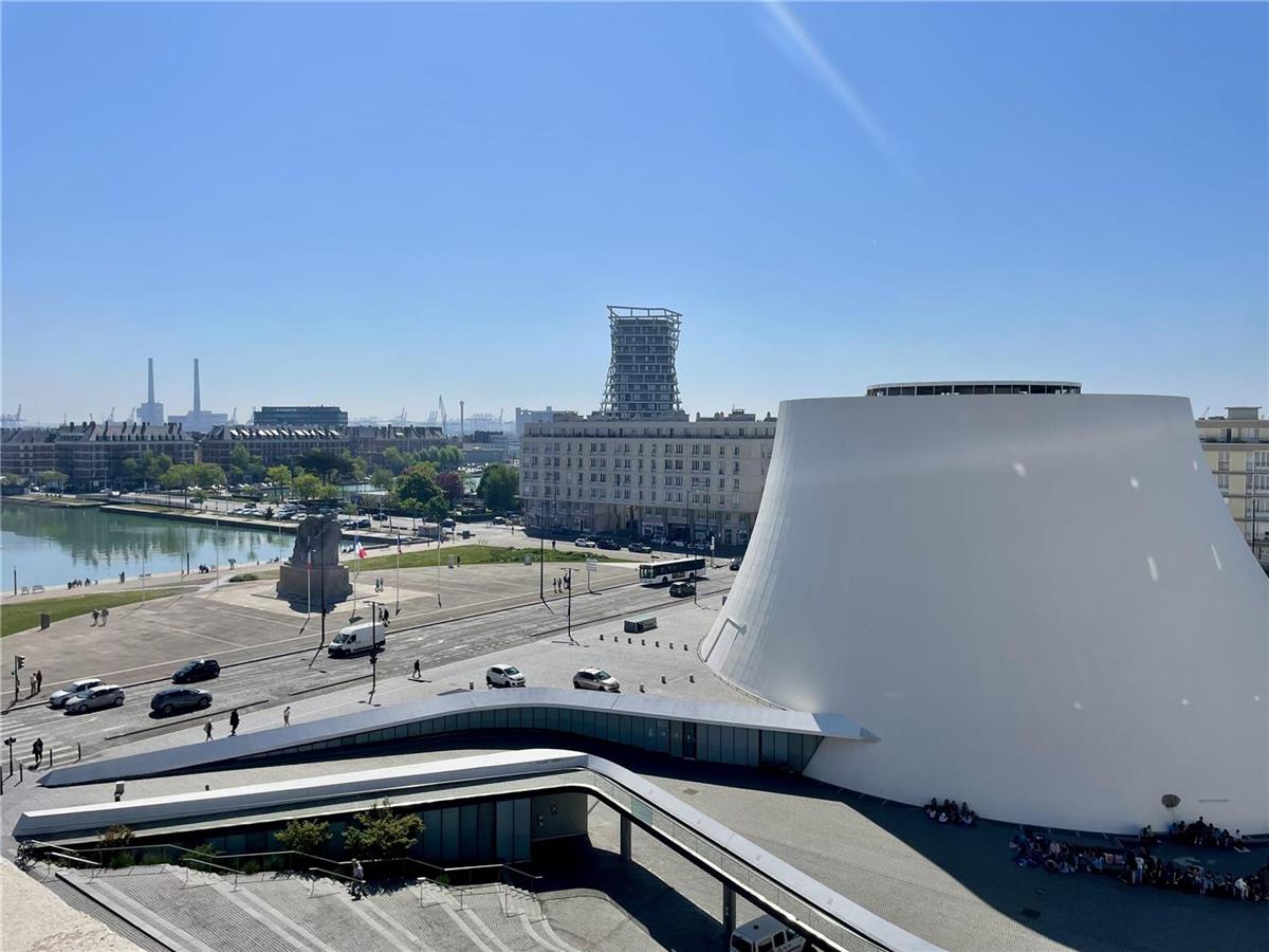 VIP floor rooms with terrace on harbor and Oscar Niemeyer's Le Volcan theatre.