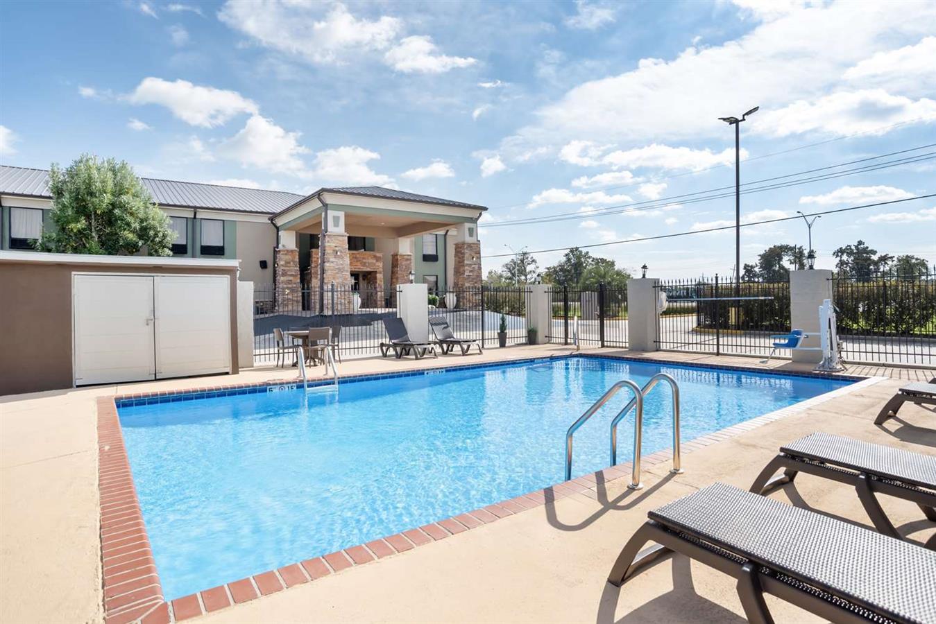 Visitors can enjoy an outdoor pool that offers a refreshing break in the Louisiana sunshine or maintain their routine in the on site fitness center.