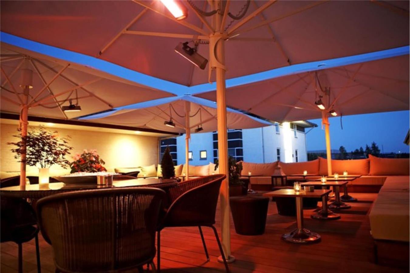 Después de la cena podrá tomar un café en la terraza del salón, donde podrá disfrutar del exclusivo suelo de madera y del calor de las sombrillas.