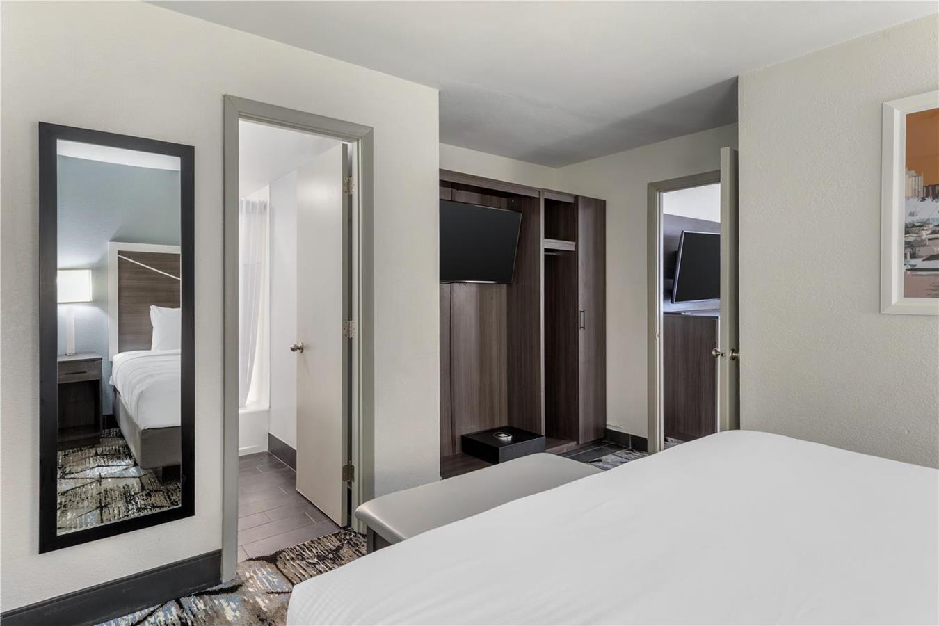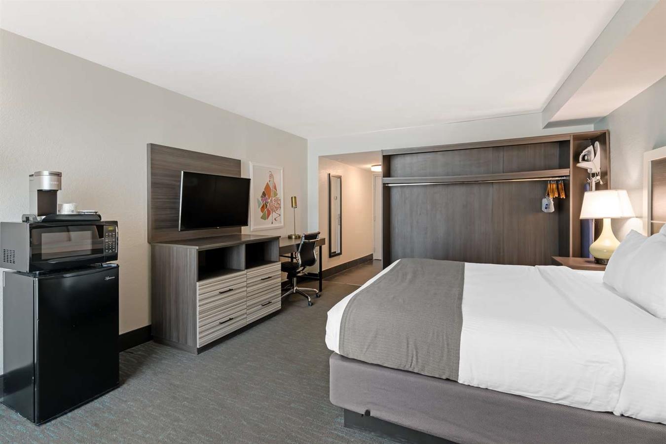 Aproveche la comodidad de los servicios e instalaciones de la habitación, como nevera, microondas, televisor HDTV de pantalla plana y acceso gratuito a Internet Wi-Fi.