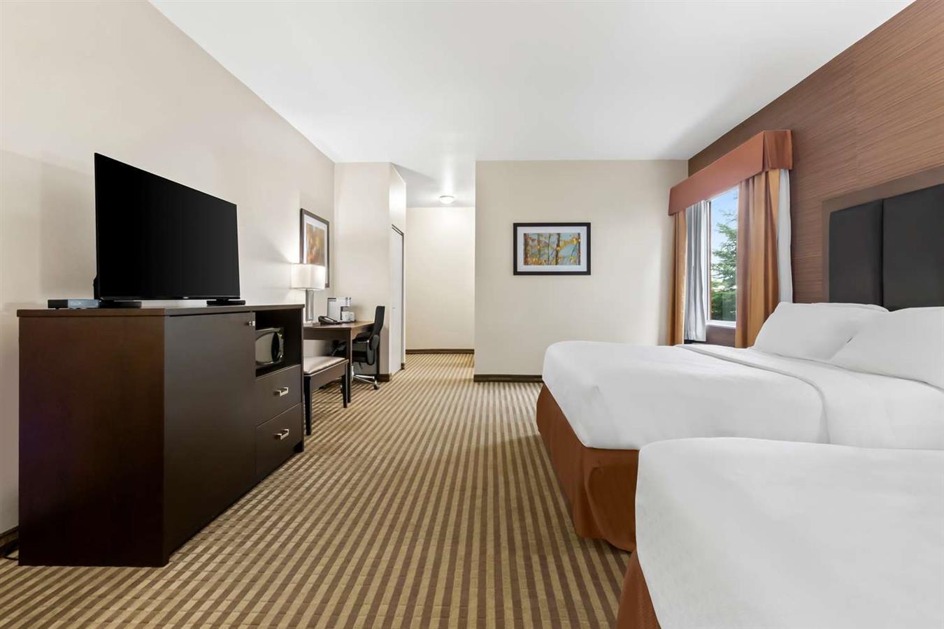 Nuestro nuevo y flamante hotel de Fergus cuenta con desayuno caliente completo gratuito, servicio de lavandería, centro deportivo y una gran variedad de habitaciones entre las que se incluyen suites con sofá cama y habitaciones con acceso para huéspedes con limitaciones físicas.