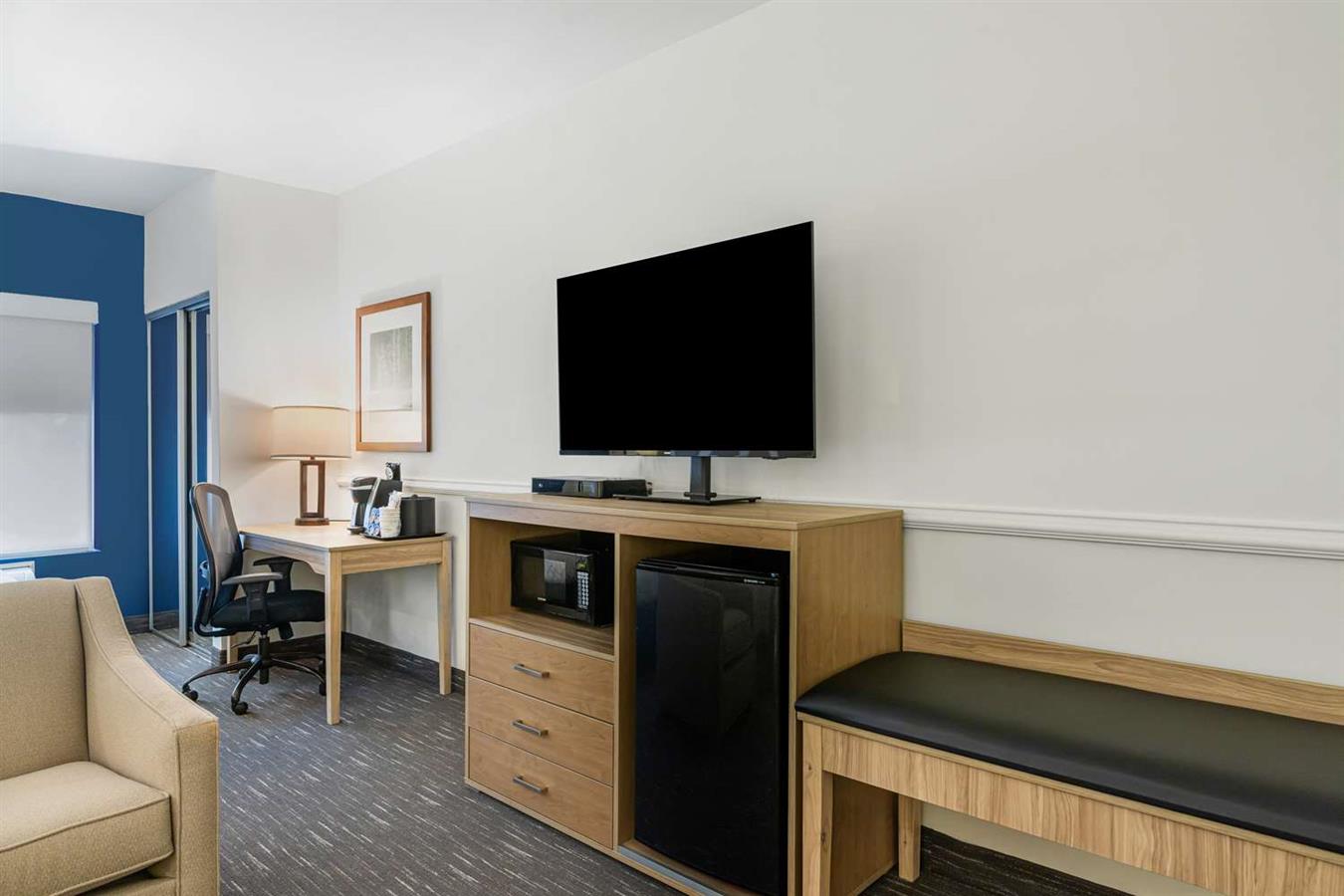 Todas las amplias habitaciones cuentan con un televisor con pantalla plana, microondas, nevera y cafetera para mayor comodidad de los huéspedes.Desde la vibrante vida nocturna de Wilmington hasta las pintorescas aventuras costeras, todo lo que necesita para una estancia excepcional está a su alcance.