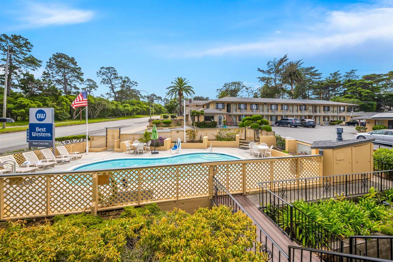 Le damos la bienvenida al Best Western Park Crest Inn.Nuestro hotel del Monterrey está situado a poca distancia en coche de Carmel by the Sea y Cannery Row y el Acuario de la Bahía de Monterrey para su mayor diversión.Estamos situados a 1,5 kilómetros de la carretera 17 Mile Drive y el campo de golf de Pebble Beach, dos magníficos lugares para relajarse.