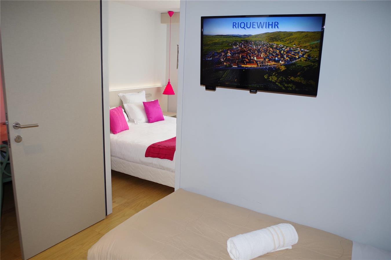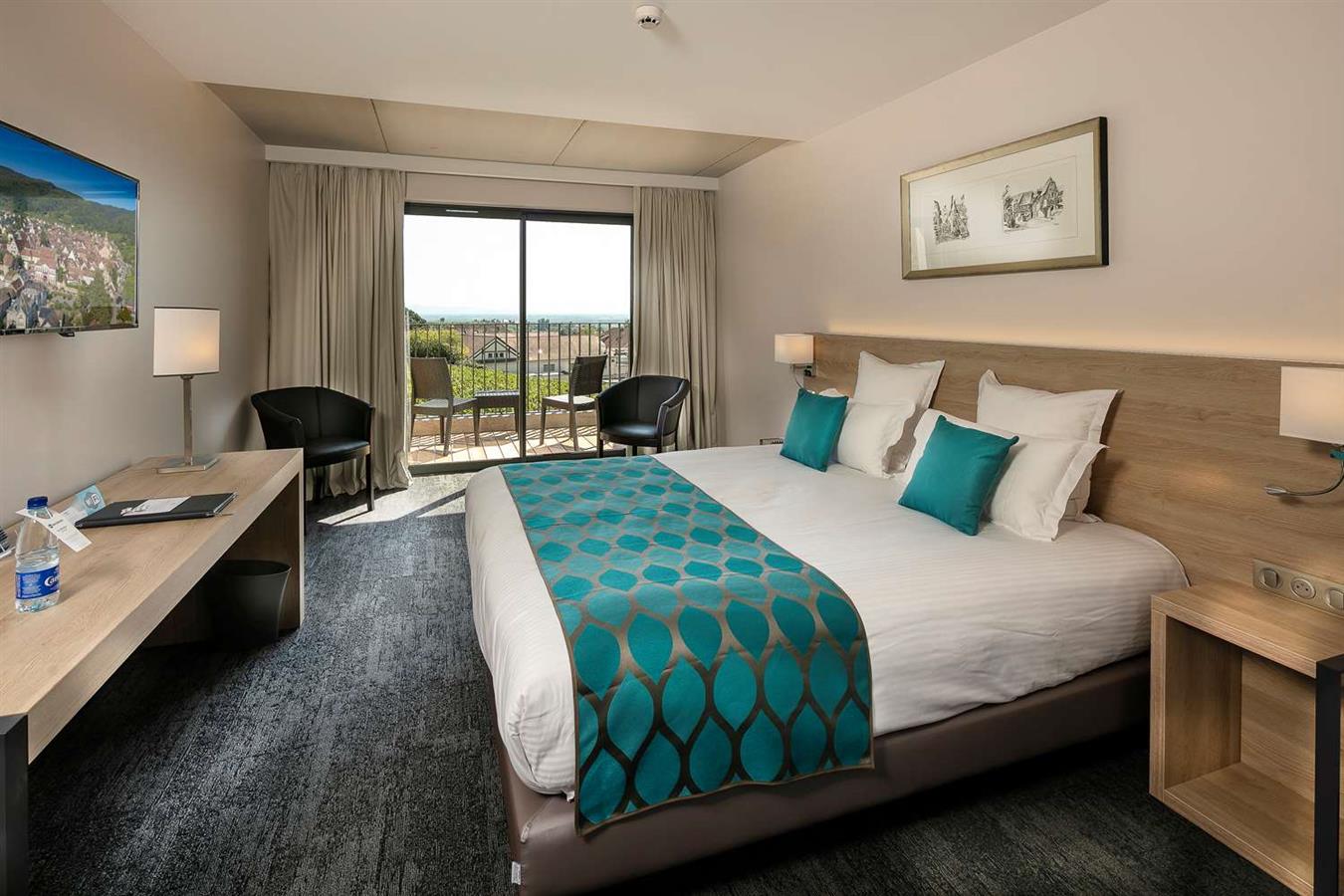 Enfrente de las murallas del pueblo medieval de Riquewihr, rodeado de viñas, el hotel es el punto de partida de muchas visitas de senderismo y ciclismo.
