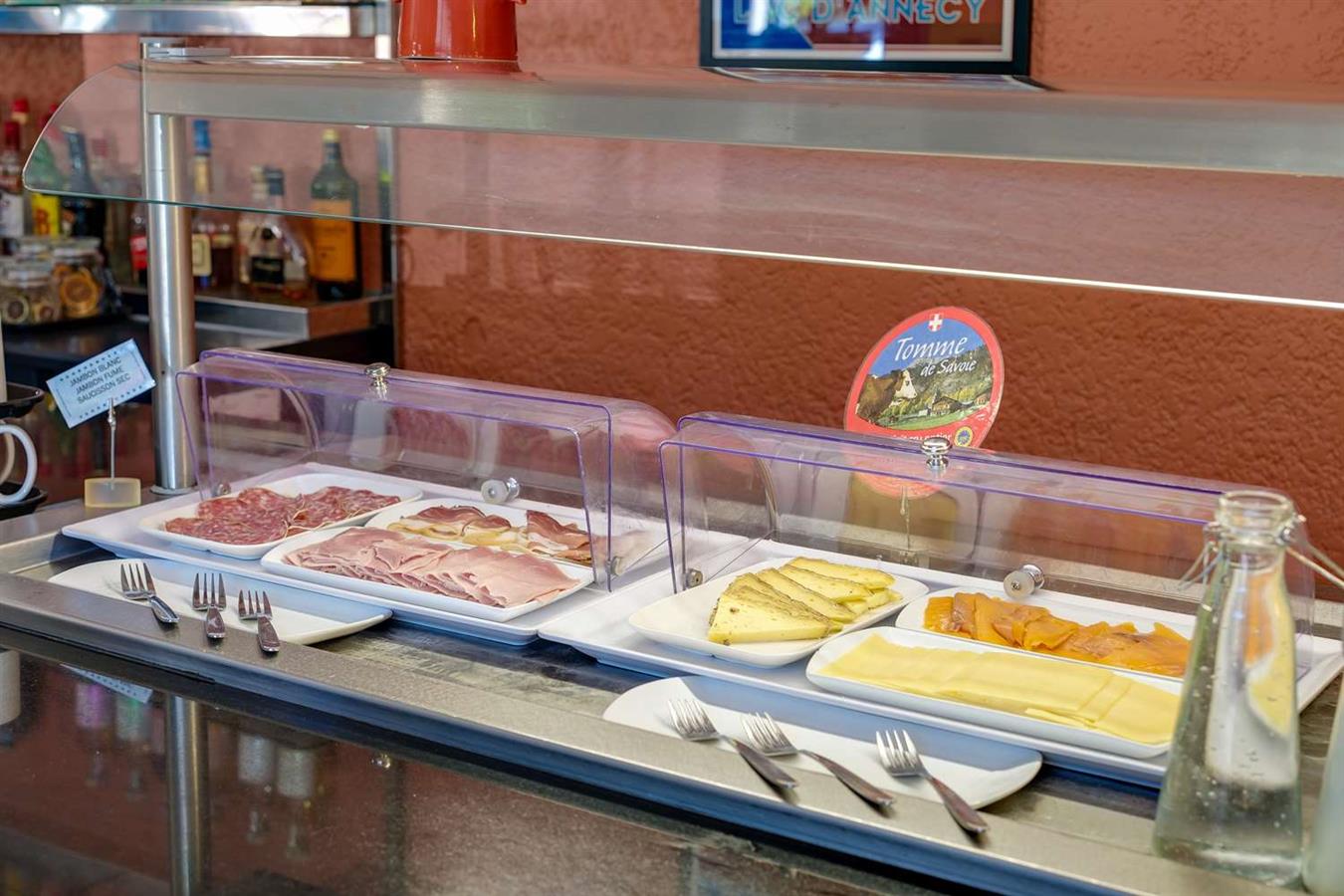 Le petit déjeuner servi tous les jours se compose de plats salés et sucrés.
