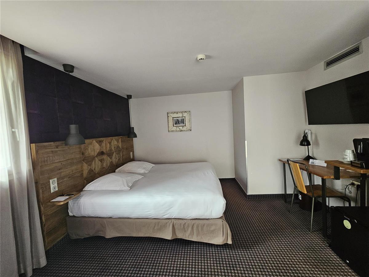 Ses 41 chambres sont entièrement rénovées, et toutes équipées de télévision écran plat, coffre-fort, plateau de courtoisie, nouveau linge de lit haut-de-gamme, accès Wi-Fi gratuit.La salle de petit déjeuner et le salon de détente sont en partie voûtés avec beaucoup de charme.