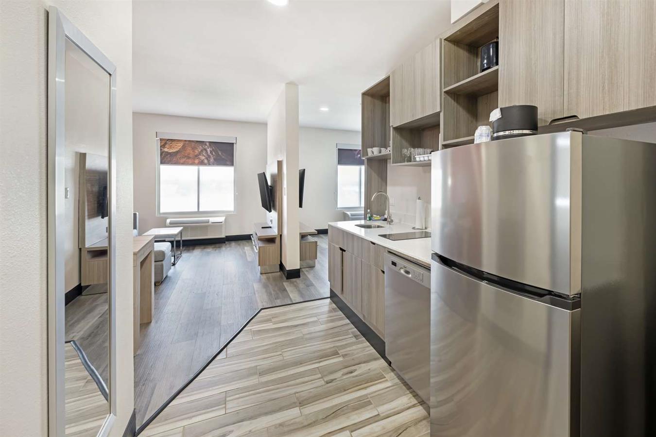 Nos chambres pour séjour prolongé disposent d'une plaque de cuisson supplémentaire, de vaisselle, d'un lave-vaisselle et d'un grand réfrigérateur.