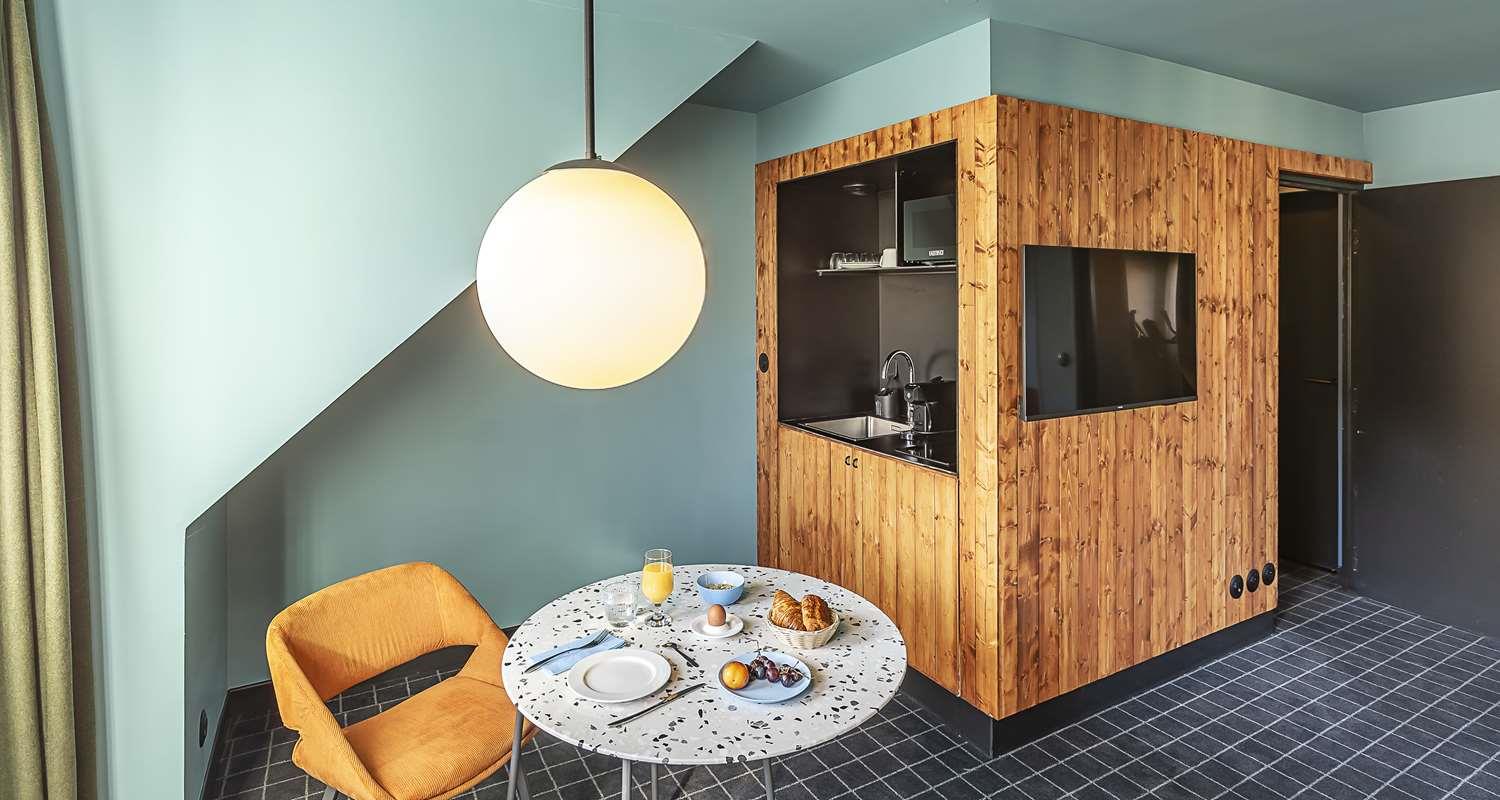 À proximité, vous pouvez naviguer jusqu'aux stations balnéaires de Malo-les-bains et Bray-Dunes ou partir à la découverte de la ville de Bergues.Inspiré de l’univers de la navigation maritime, le design de nos chambres est soigneusement conçu pour offrir à nos clients un sentiment de confort et de convivialité.