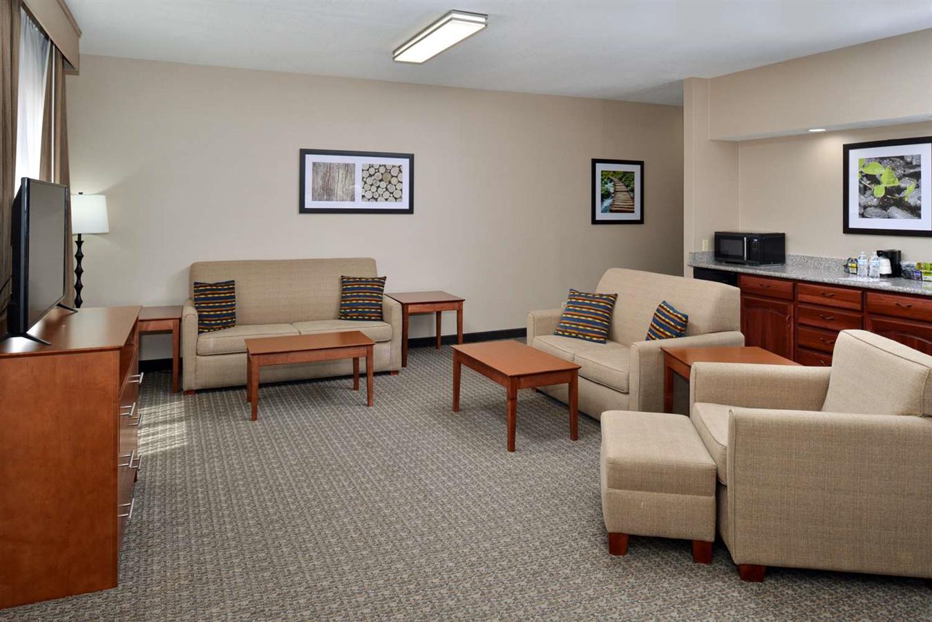 Les voyageurs d'affaires bénéficient d'un centre d'affaires entièrement équipé et d'un espace de réunion, idéaux pour les événements d'entreprise ou les petits rassemblements.Situé près de la Highway 59, à quelques minutes seulement du centre-ville de Neosho, l'hôtel offre un accès facile aux magasins d'antiquités, aux restaurants locaux et aux routes pittoresques à travers les Ozarks.