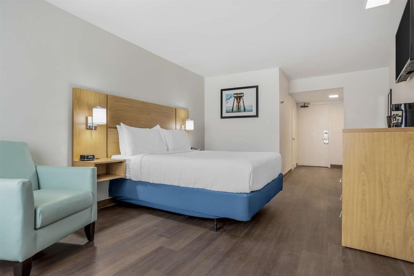 Vous souhaitez accéder à la plage depuis votre patio ? Réservez l'une de nos chambres Cabana très appréciées !Le petit déjeuner est en vente au Tiki Bar.Nos chambres ADA se trouvent au 2e étage, accessible via une rampe d'accès au rez-de-chaussée où se trouvent notre espace piscine et notre bar Tiki.