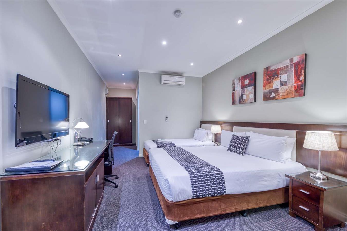 Tutte le camere dispongono di letti queen size, TV via cavo con Foxtel, accesso wireless a Internet e condizionatore con aria fredda/calda.