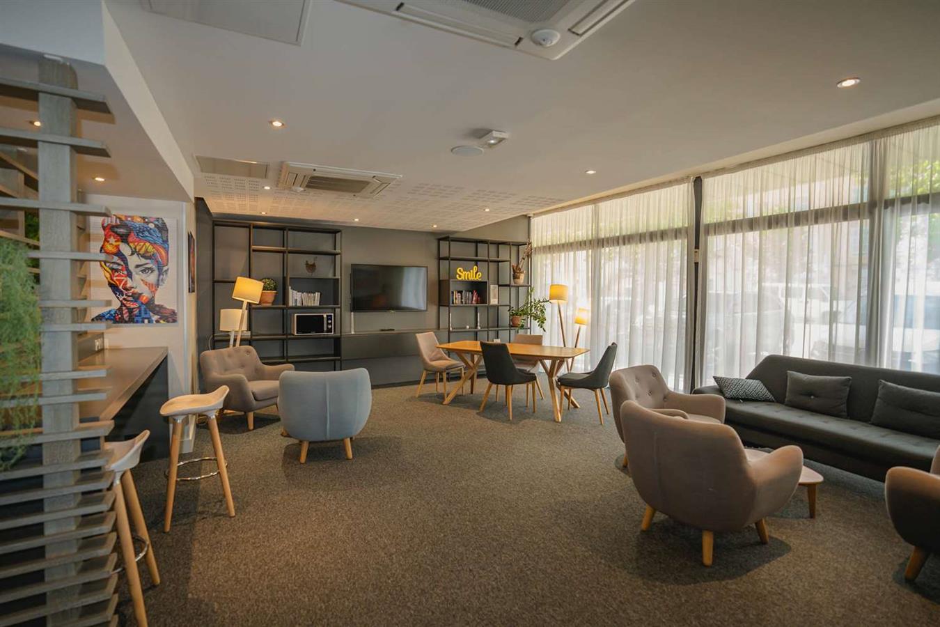 Ora è più confortevole e dispone di un arredamento moderno, in cui l'arte si esprime liberamente attraverso i montaggi fotografici urbani.Situata ai piedi di Garlaban e Sainte-Baume, tra il mare e le colline, Aubagne ti seduce con le sue stradine strette e variopinte e le piazze ombreggiate.Aubagne, la terra dei produttori di ceramiche...Che tu viaggi per affari o per piacere, la terrazza sul tetto e le nostre due sale conferenze ti aspettano!