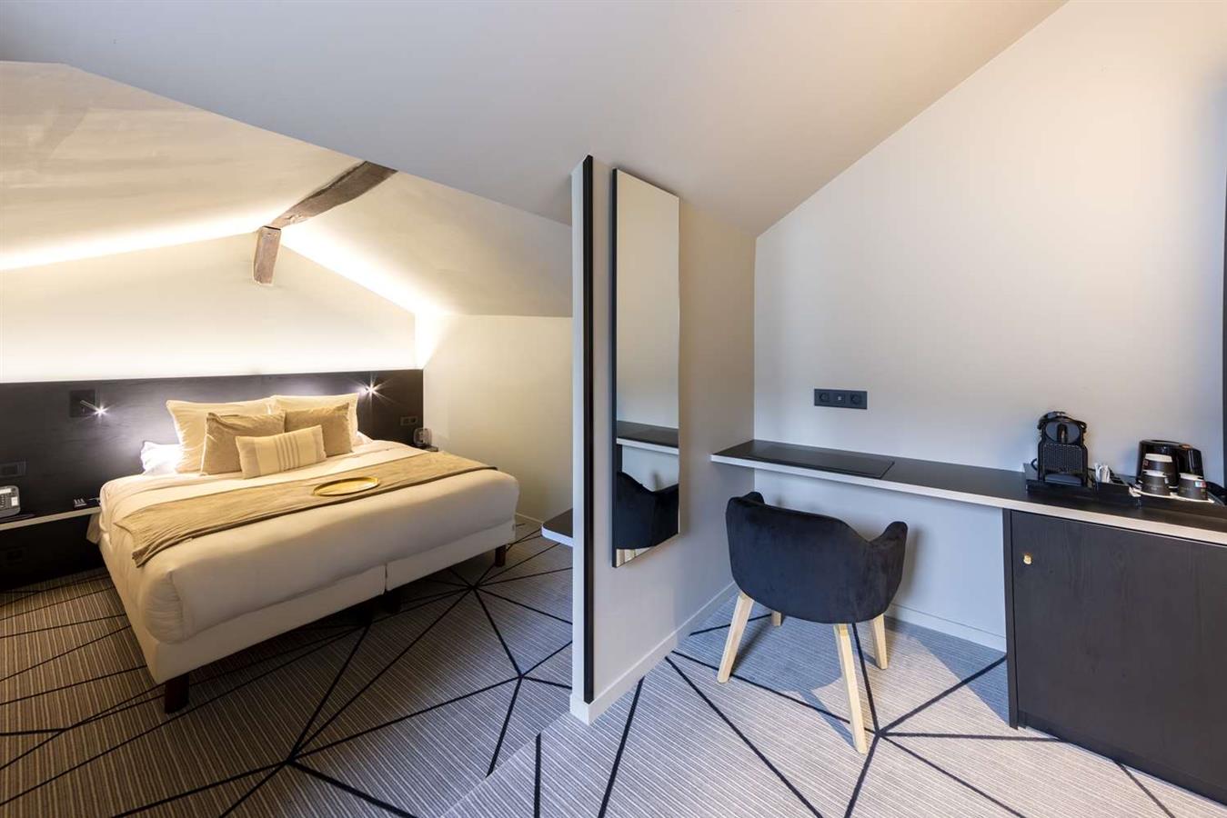 Potrai scegliere tra 5 diverse categorie di camere: deluxe, executive, tiny, junior suite o suite Leprince.