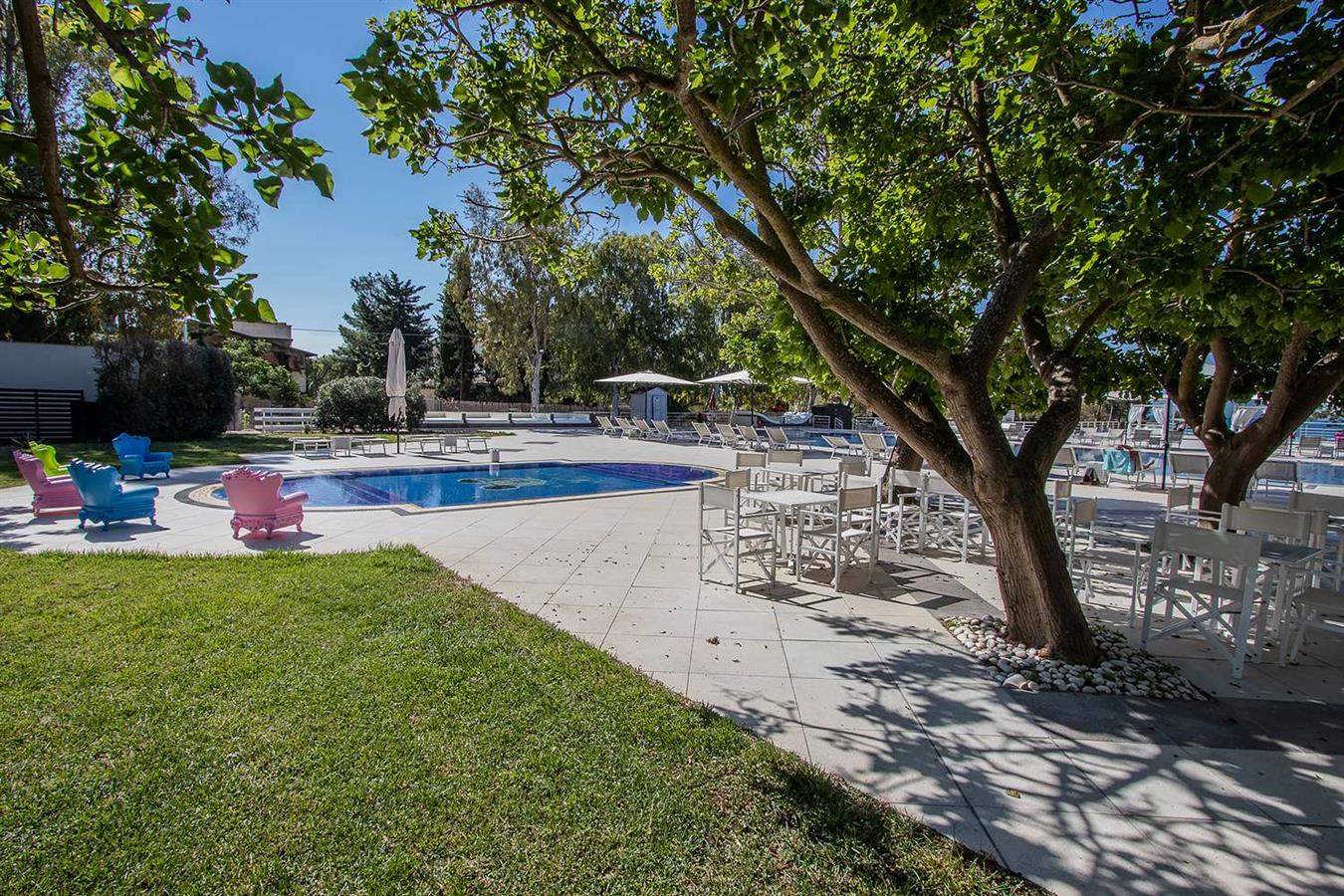 Inserito in un ambiente naturale preservato e ancora intatto, all'interno di un giardino lussureggiante nel quale si trovano un'ampia piscina per adulti, una per bambini, tre vasche idromassaggio, un bar e un ristorante con terrazza dove vengono serviti colazione, pranzo e cena.