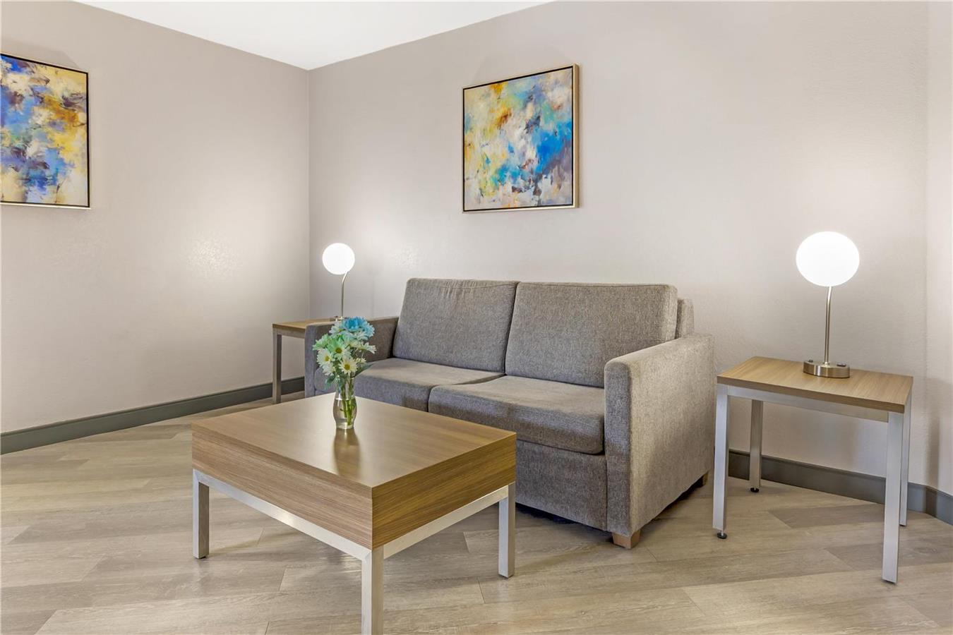 Ogni camera è dotata di televisore a schermo piatto da 42 pollici, microonde e frigorifero.I viaggiatori d'affari o di piacere potranno approfittare di numerosi servizi, tra cui un centro fitness all'avanguardia ristrutturato di recente, un business center aperto 24 ore su 24, accesso wireless a Internet ad alta velocità gratuito, lavanderia all'interno dell'hotel, ampio parcheggio gratuito e una splendida piscina all'aperto stagionale.