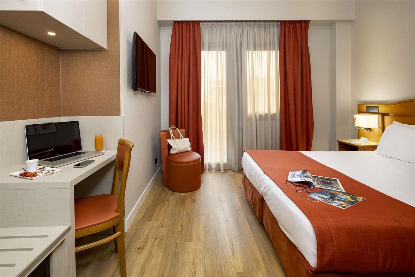 Tutte le nostre stanze sono arredate con gusto, curate in ogni dettaglio e dotate di aria condizionata, minibar, coffe maker, telefono, Tv satellitare, connessione internet Wi-fi gratuita, bagno privato con doccia, asciugacapelli e beauty kit. Disponibili anche camere per persone diversamente abili.